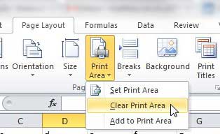 Ne yazık ki, baskı alanı ayarlanırken, yazdırabileceğiniz tek hücre aralığı budur. Yani öğrenmen gerekiyorsaExcel 2010'da baskı alanı nasıl temizlenirBelirlenen baskı alanı artık doğru olmadığından veya elektronik tablonuzun farklı bir alanını yazdırmak istediğiniz için aşağıdaki talimatları izleyebilirsiniz.