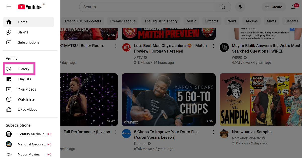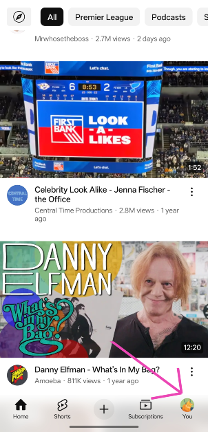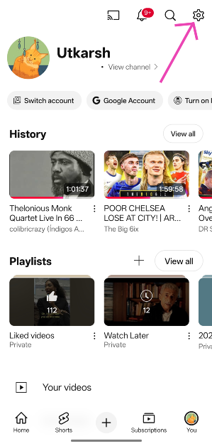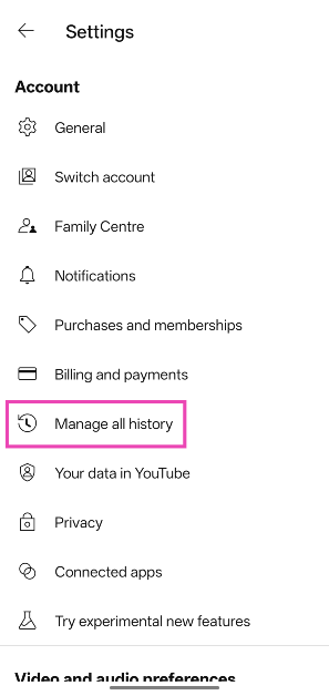 4. Adım:YouTube'unuzu görüntülemek için aşağı kaydırınArama ve İzle Geçmiş.
