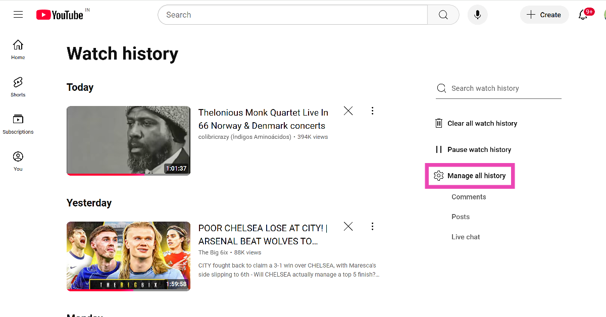 3. Adım:TıklayınTüm Tarihi Yönetin.