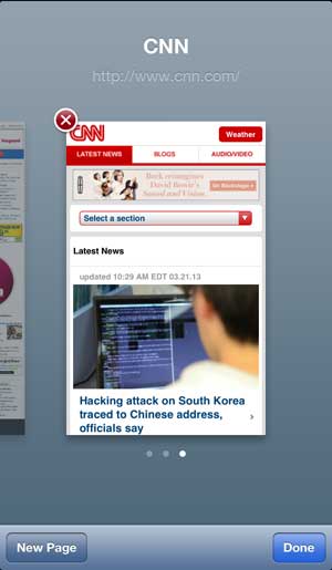 Ardından, bir web sayfasını görüntülemeye geri dönebilirsiniz.TamamlamakEkranın altındaki düğmeye veya görüntülemek istediğiniz web sayfasına dokunma. Yeni bir sekmede başka bir sayfayı açmak istiyorsanız yeni sayfa düğmesine de dokunabilirsiniz.