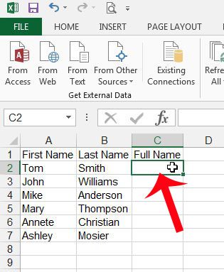 Neyse ki, kullanabileceğiniz verileri (bir çıkarma formülüne veya değerleri karşılaştıran başka bir formül türüne benzer şekilde) birleştiren bir formül vardır, bu da ilk ve soyadı Excel 2013'teki bir hücrede birleştirmenizi sağlayacaktır.