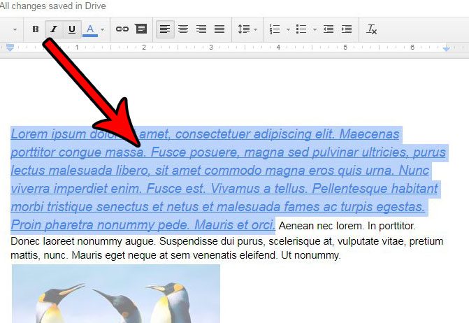 Metin seçildikten sonra, Google Dokümanlar biçimlendirmeyi otomatik olarak ona uygular.