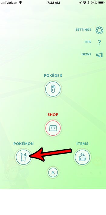 Adım 2: Ekranın altındaki kırmızı ve beyaz pokeball'a dokunun.