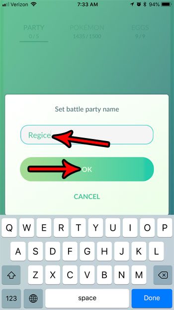Adım 6: Partiniz için bir ad girin, ardındanTAMAMdüğme.