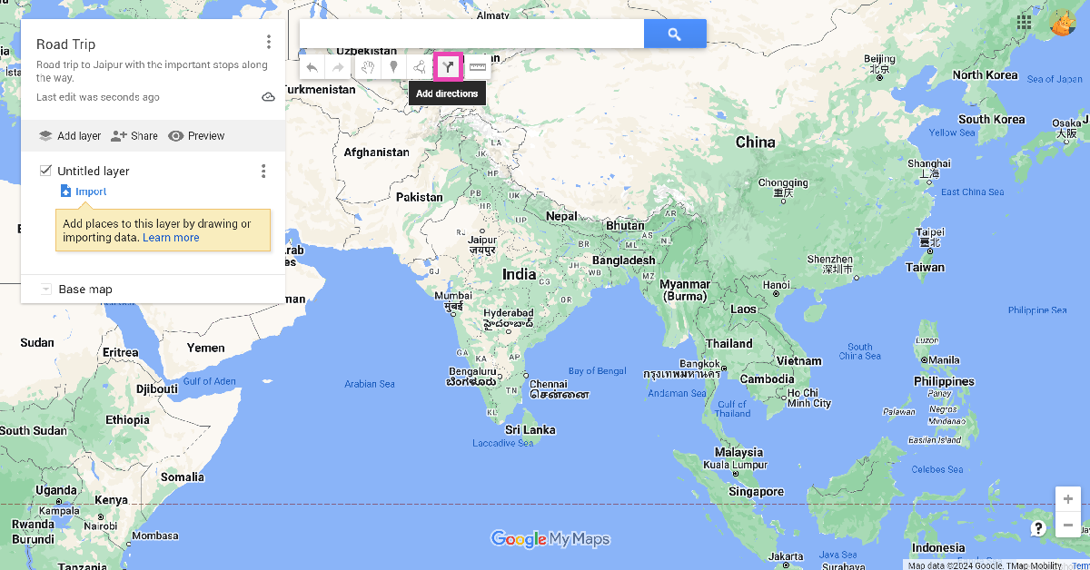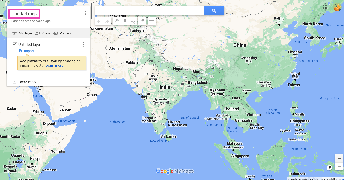 Adım 9:Eklemek için arama çubuğunun altındaki araç çubuğunu kullanınçizgilerVeşekillerharitanıza.