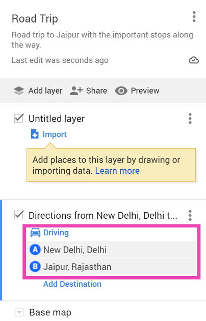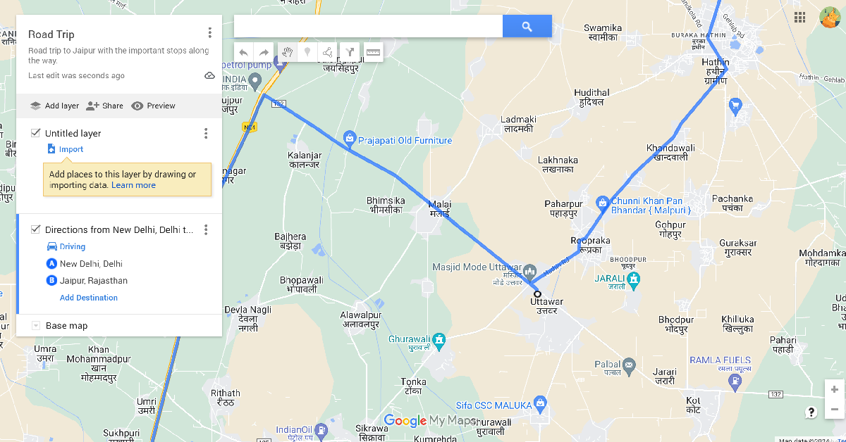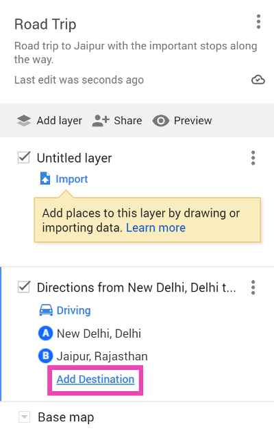 Google'ın özel My Haritalar aracılığıyla Android'de erişilebilir, ancak yeni bir harita oluşturmak veya akıllı telefonunuzda mevcut bir harita düzenlemek mümkün değildir. Hedefinize giderken birkaç durak eklemek istiyorsanız, Google Haritalar'daki normal gezinme özelliği bunu halledecek şekilde donanımlıdır.