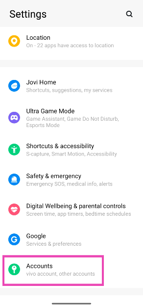 1. Adım:SeninAndroid akıllı telefon, gitAyarlarve seçHesaplar.