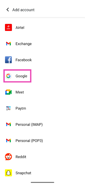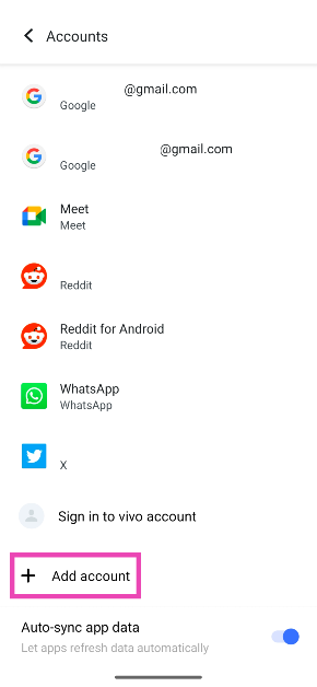 2. Adım:Aşağı kaydırın ve seçinHesap ekle.