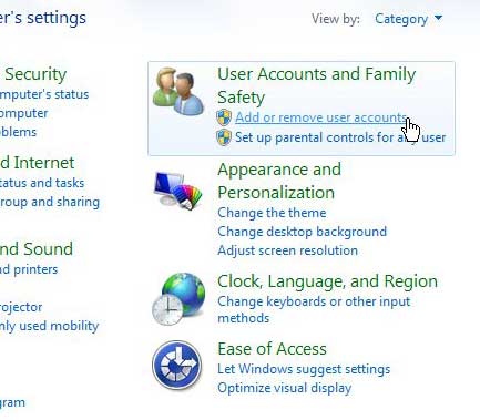 Başlat düğmesini tıklayın, ardından Kontrol panelini tıklayın2. Adım: tıklayınKullanıcı hesapları ve aile güvenliğibağlantı.