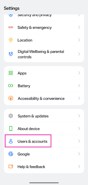 1. Adım:Gidip gelmekAyarlarve seçKullanıcılar ve Hesaplar.