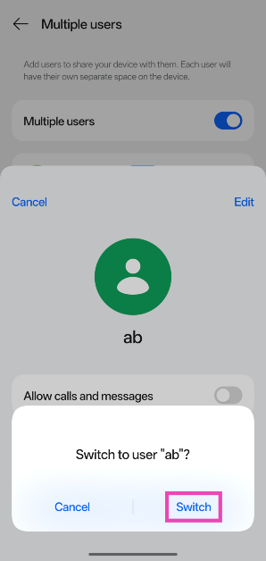 2. Adım:DenemekBirden fazla kullanıcıVe açgeçiş anahtarı.