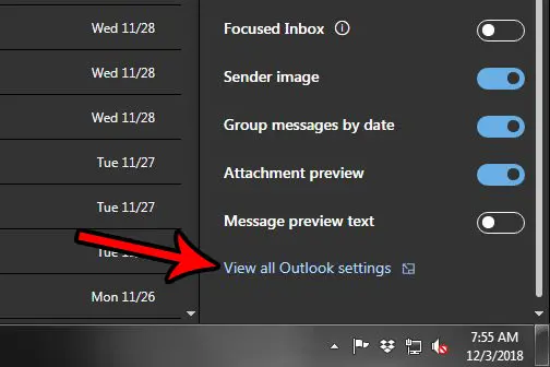 3. Adım: SeçinTüm Outlook'u GörüntülePencerenin sağ tarafındaki sütunun altındaki ayarlar seçeneği.