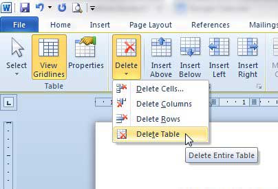 Word 2010'da bir tabloyu silme