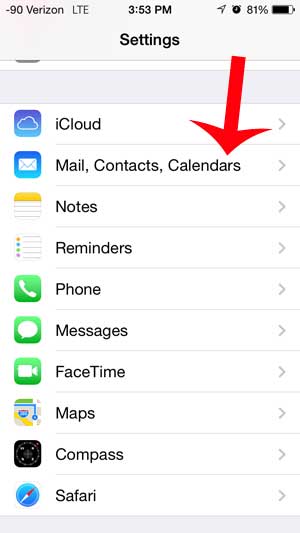 2. Adım: Aşağı kaydırın ve dokununPosta, Kişiler, Takvimlerseçenek.