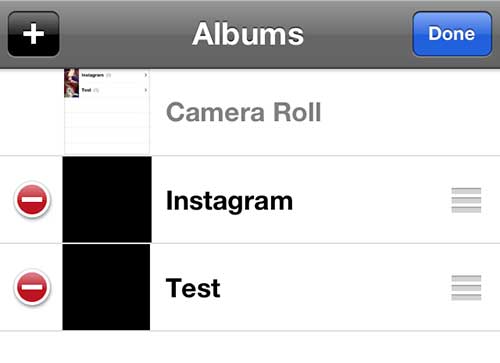 Ancak iPhone 5'inizde fotoğraf uygulamasını açarsanız ve Camera Roll albümünden başka albümler olduğunu görürseniz, tüm resimlerinizi iPhone'unuzdaki aynı albümde saklamak için diğer albümleri silebilirsiniz.