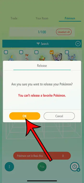 Adım 7: DokunTAMAMPokemon'u serbest bırakmak istediğinizi doğrulamak için.
