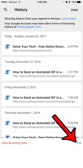 4. Adım: dokununDüzenlemekEkranın sağ alt köşesinde düğme. BirGöz atma verilerini temizleyinHer şeyi silmeyi tercih ederseniz, ekranın sol alt köşesindeki seçenek.