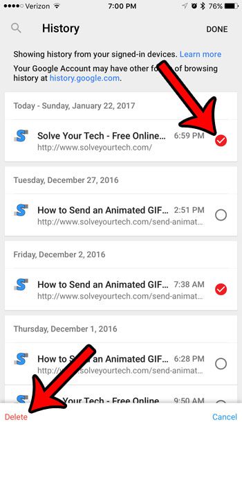 Adım 5: Silmek istediğiniz her sayfanın sağındaki daireye dokunun, ardındanSilmekEkranın sol alt köşesinde seçenek.