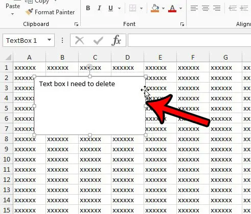 Bu makaledeki adımlar Microsoft Excel 2013'te gerçekleştirildi, ancak Excel 2010 ve Excel 2016'da da çalışacak. Bu adımları tamamlamanın sonucu, daha önce elektronik tablounuzda bulunan bir metin kutusunun artık tamamen gideceği.