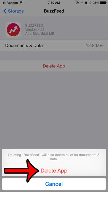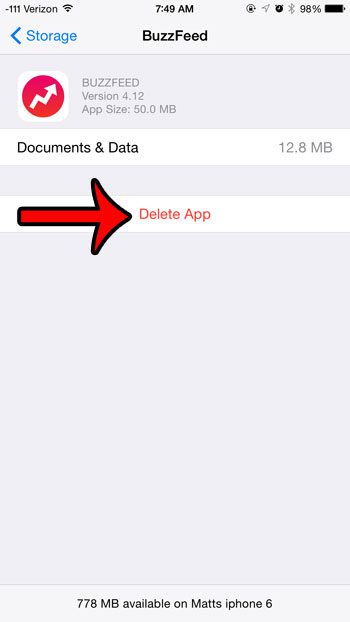 Adım 5: Silmek istediğiniz uygulamayı seçin. Aşağıdaki resimde BuzzFeed uygulamasını sileceğim.