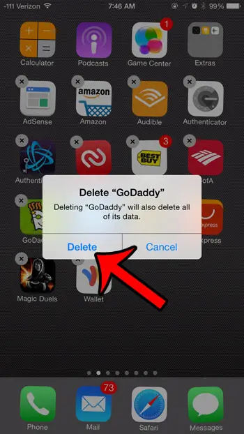 Aşağıdaki örnekte, GodAddy uygulamasını sileceğim.