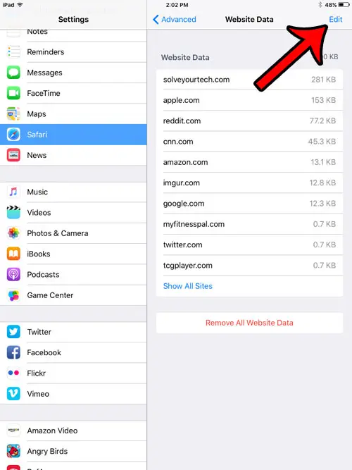 İOS 9'daki bir iPad'de bireysel web sitesi verilerinin silinmesi