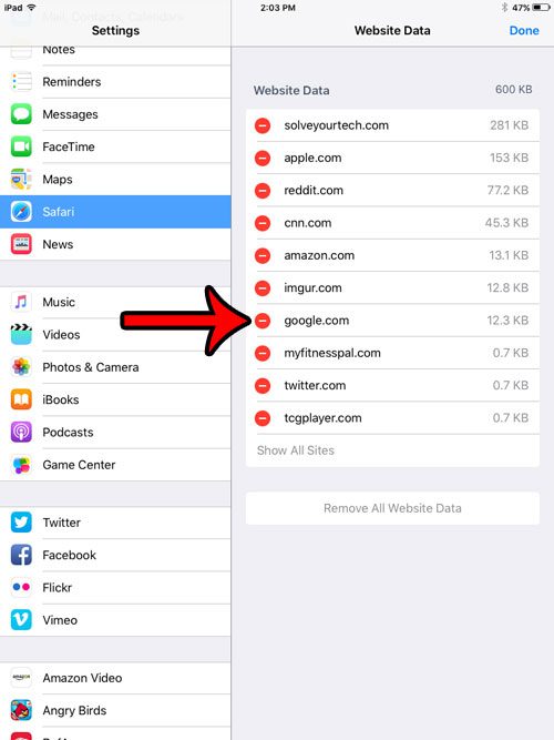 Artık iPad'inizdeki belirli bir web sitesi için çerezleri nasıl sileceğinizi bildiğinize göre, bu bilgileri bu bilgileri silmek istediğinizde kullanabilirsiniz, ancak tarayıcıdaki tüm çerezleri silmek istemezsiniz.