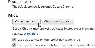 4. Adım: tıklayınİçerik Ayarlarıiçindeki düğmeMahremiyetpencerenin bölümü.