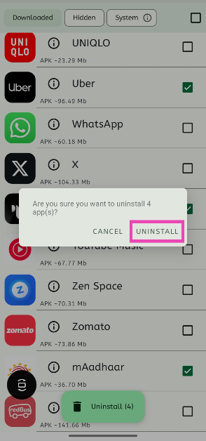 Yukarıda belirtilen yöntem yalnızca Google Play Store üzerinden indirilen uygulamalar için çalışır. Üçüncü taraf kaynaklardan indirilen uygulamaları toplu silmek istiyorsanız, UNAPP uygulamasını kullanın.