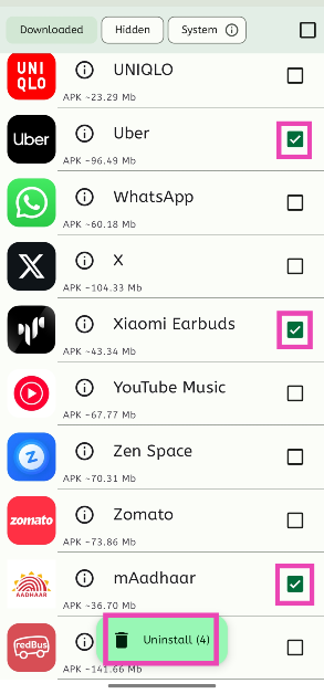 Adım 5:Dokunonay kutularıKaldırmak istediğiniz uygulamaların yanında.