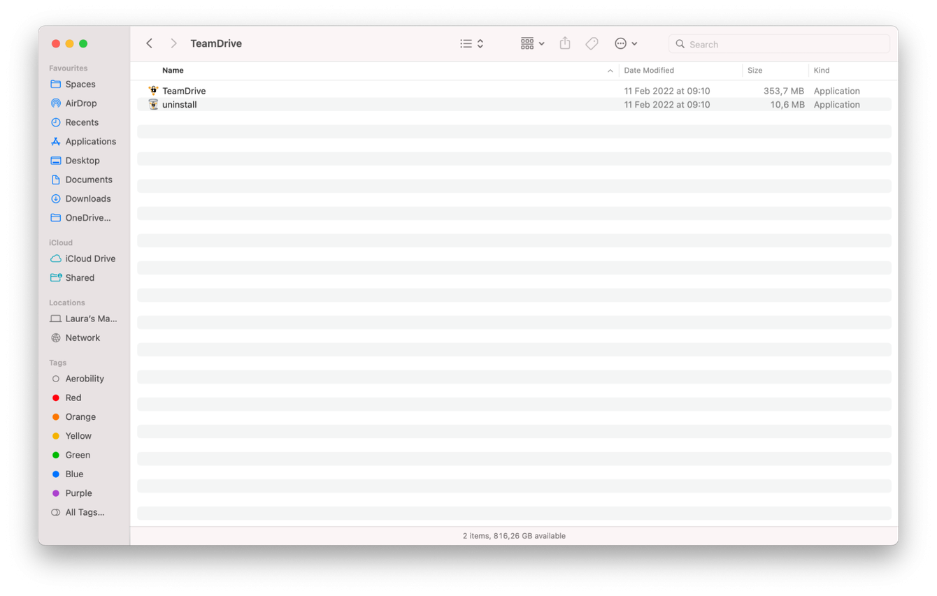 Örneğin, aşağıdaki resimde, uygulama ekibi sürücümde mevcut bir yerel kaldırma aracı bulunan uygulamalarda bir klasör var.