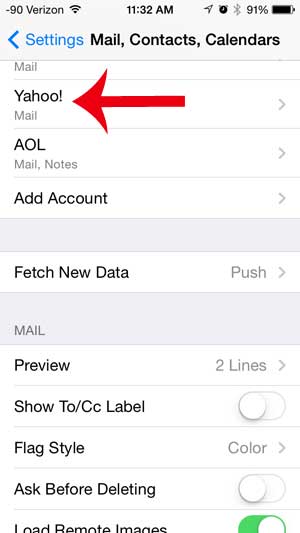 Ancak muhtemelen iPhone'unuzda görmek istemediğiniz bu hesaba hala e -posta alıyorsunuz. Ve iPhone'unuzdaki depolama alanı sorunlarıyla karşılaşıyorsanız, artık kullanmadığınız Yahoo hesabını silmek, biraz yer açmak için basit bir yol olabilir. Bu yahoo hesabını iPhone'unuzdan nasıl sileceğinizi öğrenmek için aşağıdaki öğreticimizi izleyin.