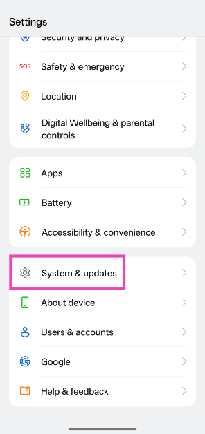 1. Adım:Gidip gelmekAyarlarve seçSistem ve Güncellemeler.