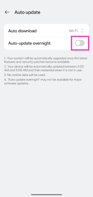 Adım 5:Yandaki geçiş anahtarını kapatınBir gecede otomatik güncelleme.