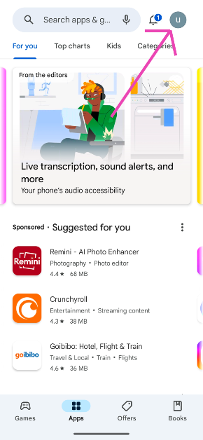 1. Adım: Öğle yemeği.Telefonunuzda ve dokununprofil resmiekranın sağ üst köşesinde.