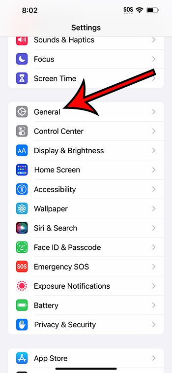 2. Adım: Aşağı kaydırın veGenelseçenek.