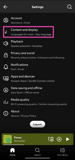 Gidip gelmekSpotify> Ayarlar ve Gizlilik> İçerik ve Ekranve tuvalin yanındaki geçiş anahtarını kapatın.