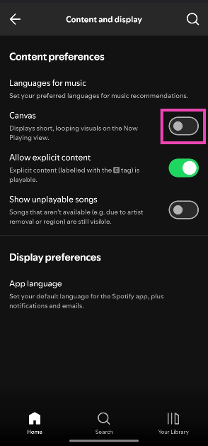 Spotify mobil uygulamasında tuvali devre dışı bırakın
