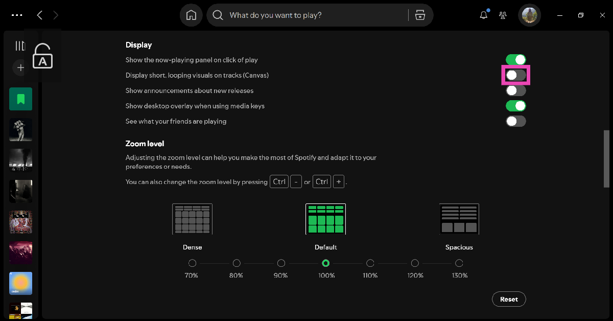 Albüm kapağı yerine Spotify Player'da döngüsel görseller görüyorsanız, bunun nedeni tuval özelliğinin açık olmasıdır.