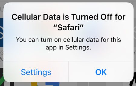 Hücresel verileri devre dışı bıraktımSafariAşağıdaki resimde uygulama.
