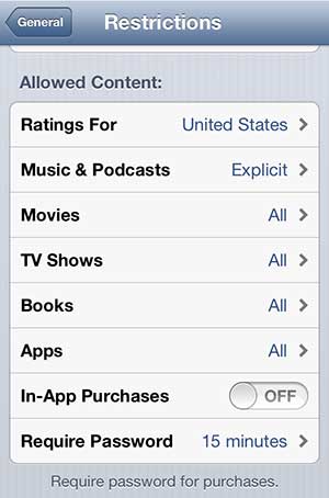Neyse ki, iPhone 5, iPhone 5'e yüklenen uygulamalar için uygulama içi satın alımları devre dışı bırakmanın bir yolunu bile cihazdaki satın alımları devre dışı bırakmanın yollarını sunar.