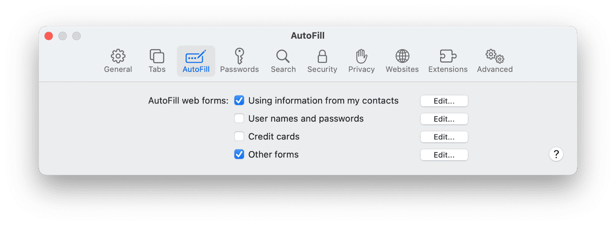 Anahtar zincirinizde depolanan bilgilerin çoğu, web siteleri için oturum açma bilgileri ve çevrimiçi alışveriş için ödeme yapmak için kullandığınız kredi ve banka kartı detayları olacaktır. Safari'deki her ikisini de devre dışı bırakabilirsiniz: