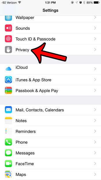 2. Adım: Aşağı kaydırın veMahremiyetseçenek. Bu ayara erişmeyi de seçebileceğinizi unutmayın.iklimilave olarak.