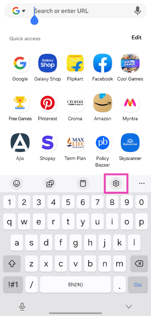 1. Adım:DokunAyarlar simgesiSamsung klavyenin araç çubuğunda. Alternatif olarak, gitAyarlar> Genel Yönetim>Samsung Klavye Ayarları.