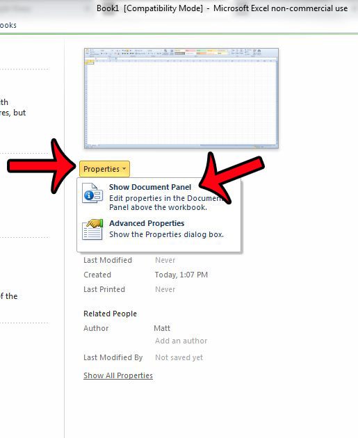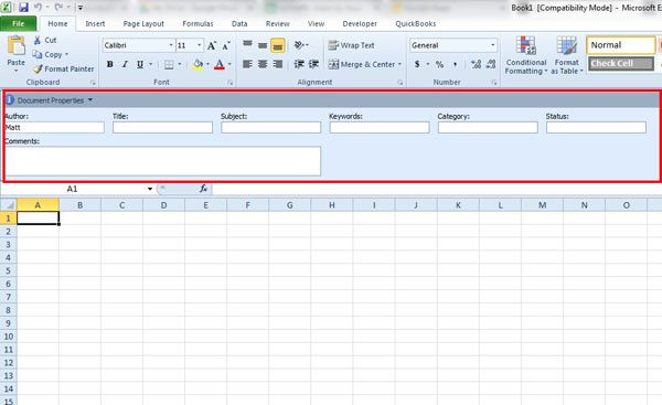 Artık Excel 2010'da belge panelini nasıl görüntüleyeceğinizi bildiğinize göre, şu anda düzenlediğiniz çalışma kitabı için bu menüye dahil edilen bilgileri görüntüleyebilir ve düzenleyebilirsiniz.
