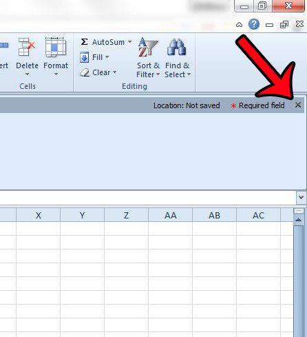 Bu makaledeki adımlar, çalışma sayfanızın üzerindeki belge panelini gösterebilmeniz için Excel 2010 menüsünde size rehberlik edecektir. “Belge paneli” ifadesini kullandığımızda, aşağıdaki resimde kırmızı renkte belirtilen nesneyi ifade eder.