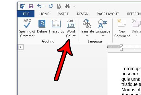 3. Adım: tıklayınKelime sayımıiçindeki düğmeKanıtlamaŞeridin bölümü.