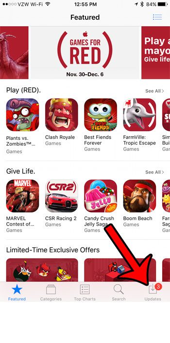 2. Adım: SeçinGüncellemelerekranın sağ alt köşesinde.