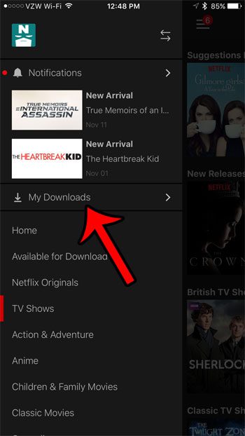 Sonra seçerekİndirmelerimseçenek. (Ayrıca birİndirilebilirHangi videoların indirilebileceğini görmek istiyorsanız, bu menüde de seçenek.)