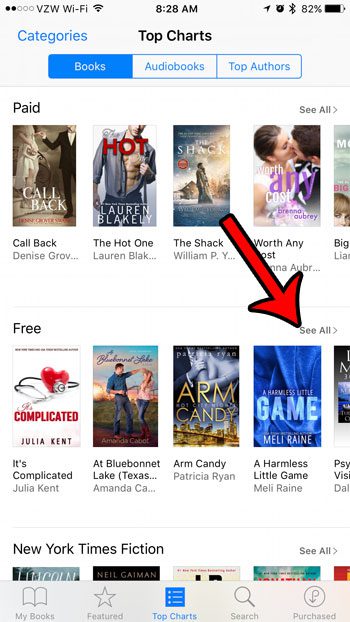 Aşağıdaki adımlar bir iPhone 7 Plus'ta iOS 10.2'de gerçekleştirildi. Bu kılavuz size iBooks'ta “ücretsiz” kitap kategorisini nasıl bulacağınızı, ardından bu kitaplardan birini iPhone'unuza nasıl indireceğinizi gösterecektir. İndirilen kitap daha sonra cihazdaki iBooks uygulamasında okunabilir.